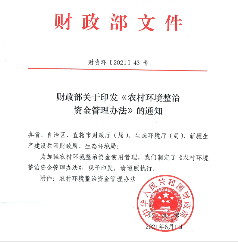 名       称: 关于印发《农村环境整治资金管理办法》的通知 发布日期: 2021年09月29日