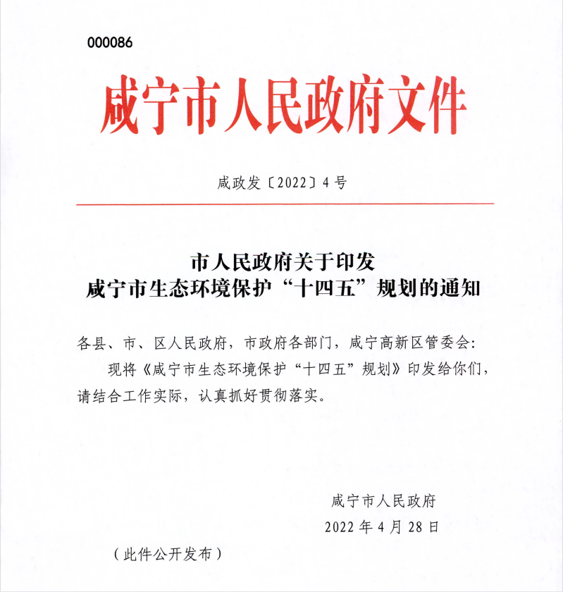 名       称: 市人民政府关于印发咸宁市生态环境保护“十四五”规划的通知 发布日期: 2022年05月11日