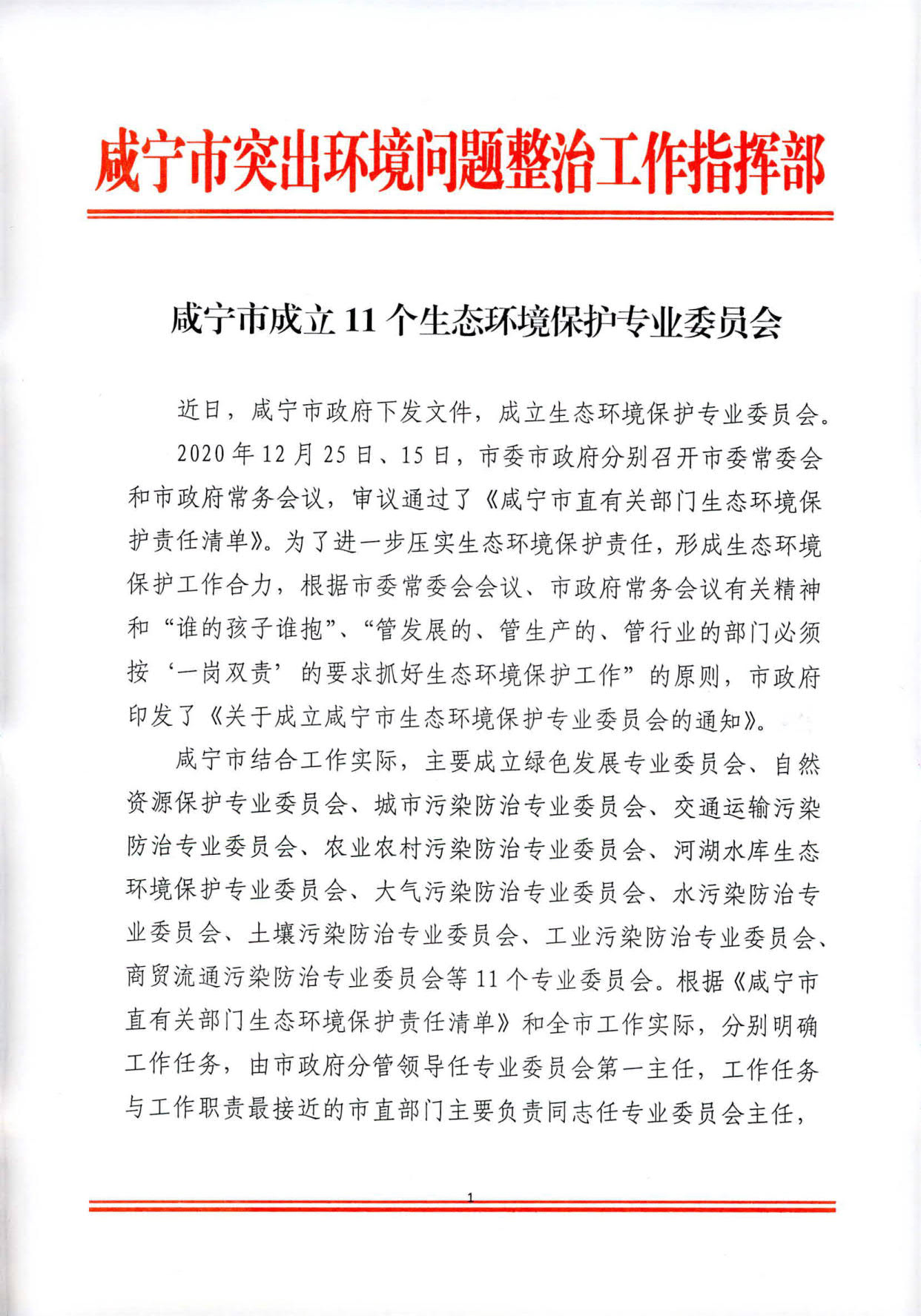 名       称: 咸宁市成立11个生态环境保护专业委员会 发布日期: 2021年04月19日